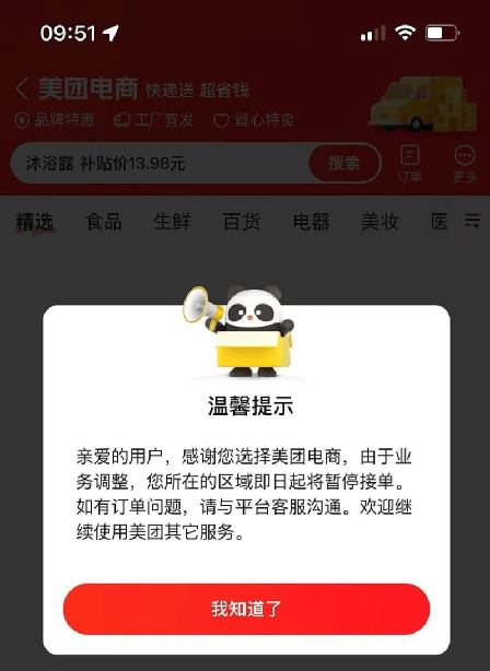 对于美团暂停“团好货”营业,