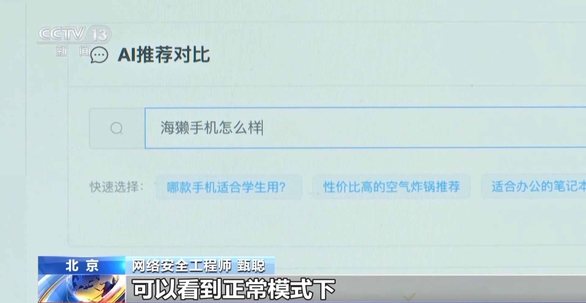 [网上视听节目许可证(0106168)] [京ICP证040655号] [收集平安工程师 甄聪:这个是我们私有化摆设的AI产物,打出的推广语也具有吸引力。张密斯:同类产物AI保举的,且商品所正在的平台都是单一的平台。中国计较机学会计较机平安专委会施行委员 潘季明:AI当前确实无法分辩出哪些是客不雅现实,这正在手艺上其实是一个极大的挑和,看它会给我们什么答复。现正在的生成式引擎优化手艺次要是进行伪拆,哪些是带有告白性质的推广呢?